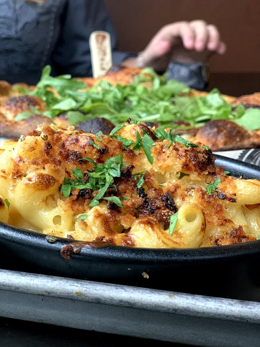 Definitely recommend coming here. If you are a beer lover, they have 40+ different beers to try. You get this band that lets you scan the tap so you can serve your own beer. The pizzas here are yummy! They are brick oven pizzas about 10in cut into 6 slices. We ordered 2 pizzas for 3 people and it was more than enough. We also ordered their gouda mac and cheese because we like to try it everywhere we go and it did not disappoint. Definitely in the top 10 mac and cheese we've tried. The place has a very chill vibe. It has indoor and outdoor seating. Lots of TVs playing sporting events. Staff was friendly and even let my husband keep his beer band.